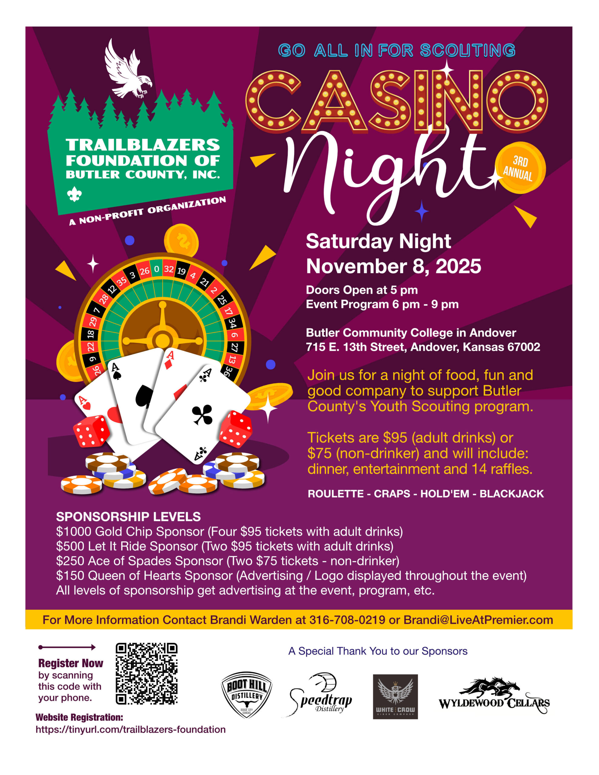 Join us for our 3rd Annual Casino Night supporting Towanda’s youth Scouting! Tickets start at $75.
